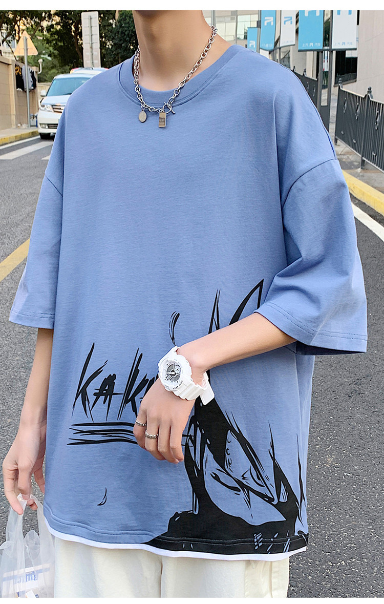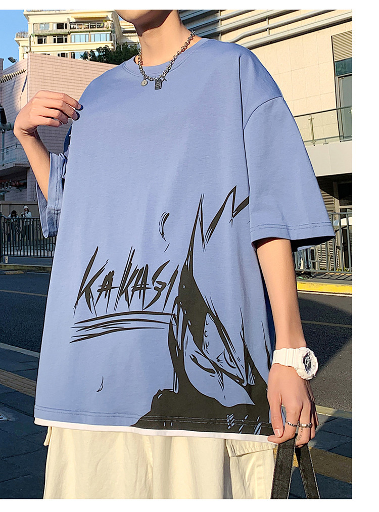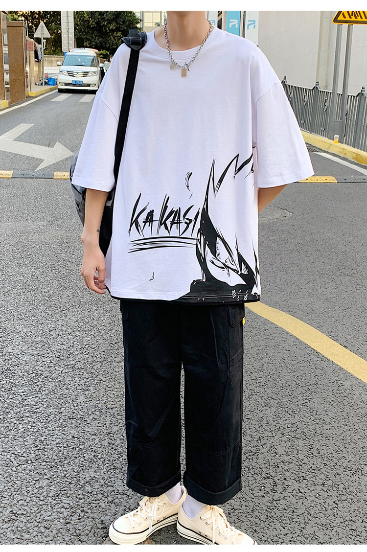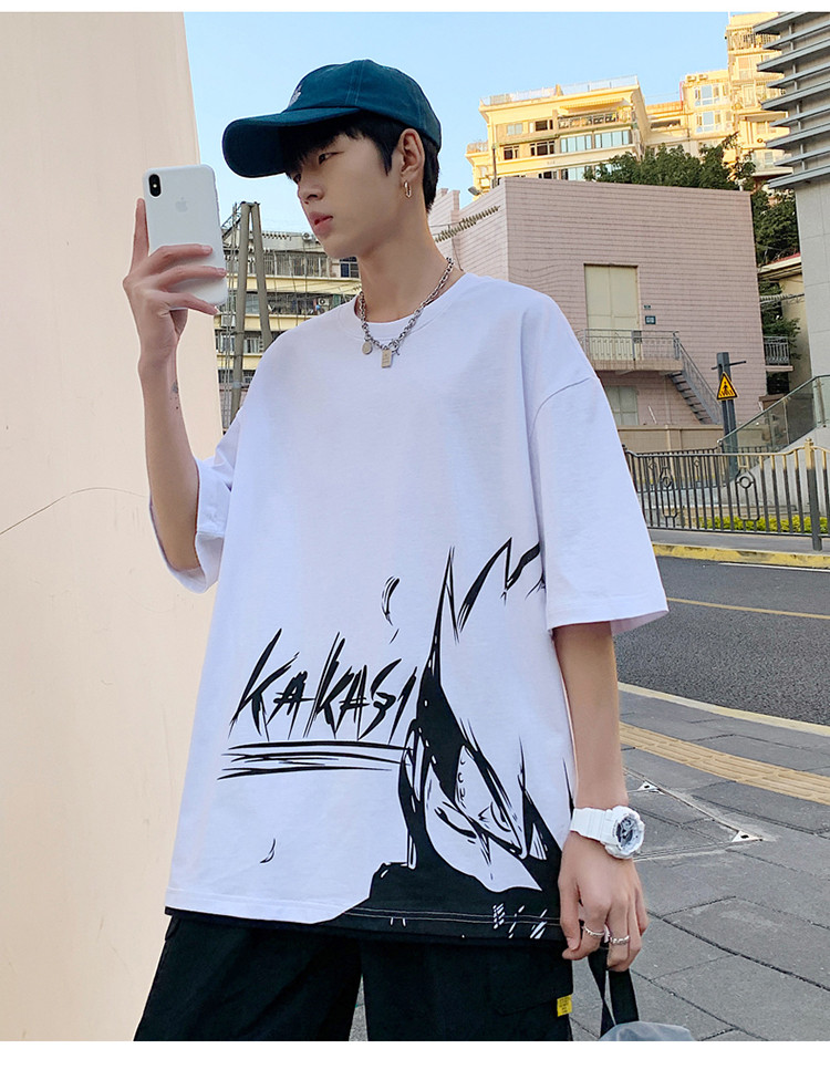 純棉舒適】夏季新款男士圓領短袖時尚火影印花半袖T恤