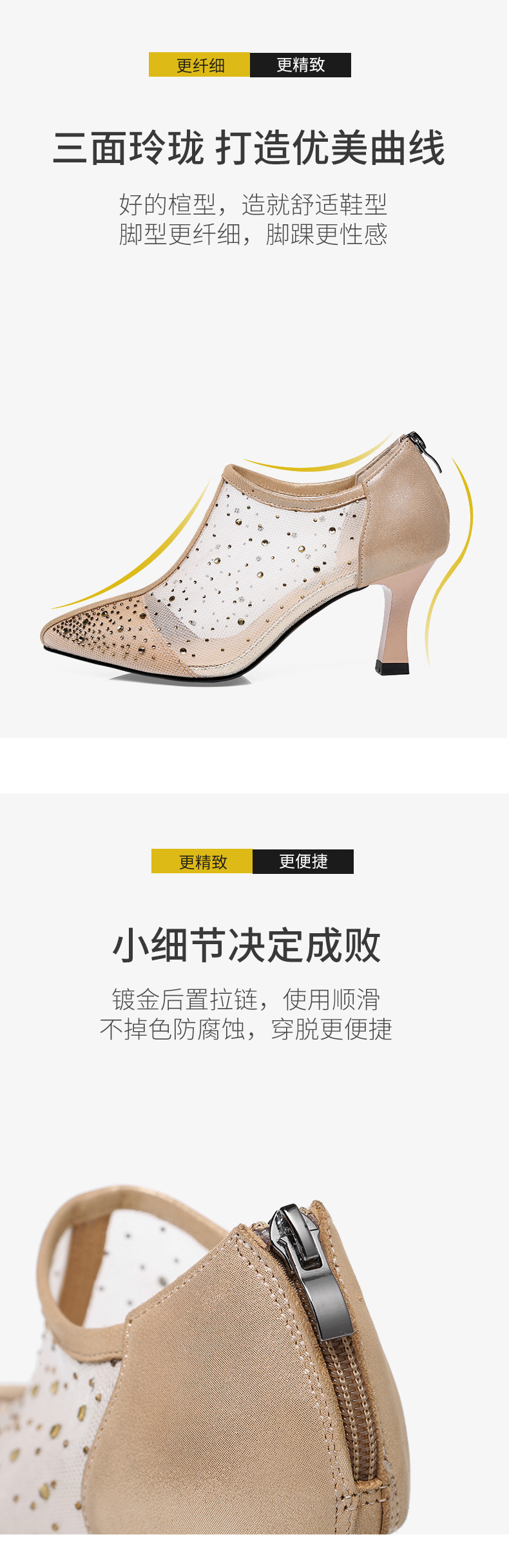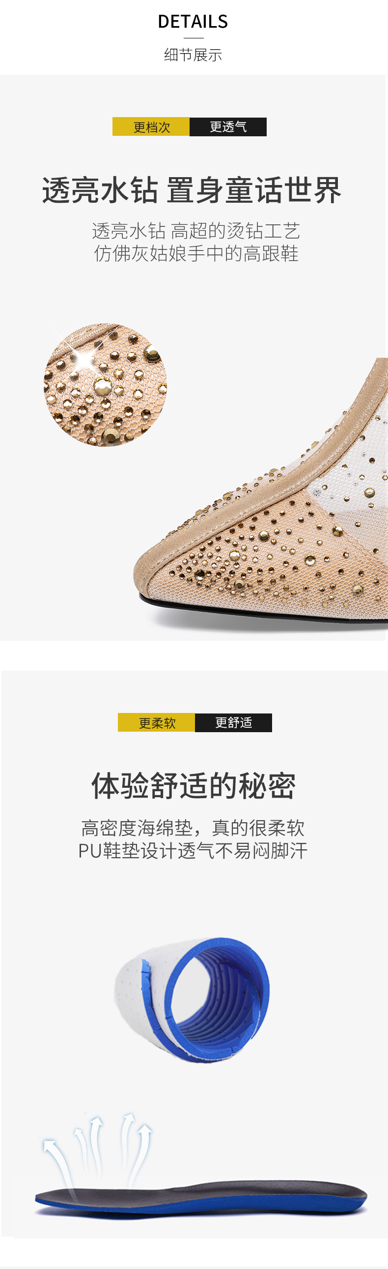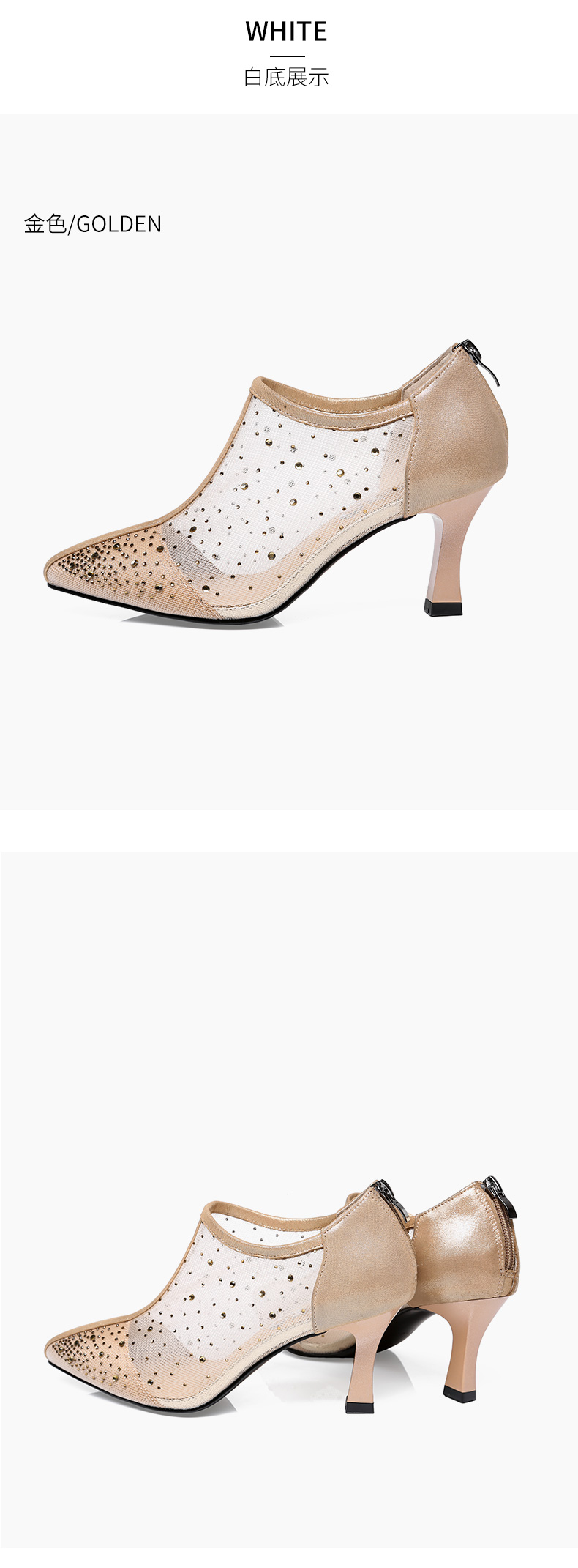 浪莎法式尖頭高跟鞋女細跟2021春夏新款深口鏤空網紗水鉆休閑單鞋