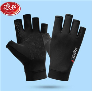 浪莎防曬手套男開車防滑速干透氣夏季薄款露指騎行手套男戶外釣魚手套LSSQ-A045-5055 黑灰色