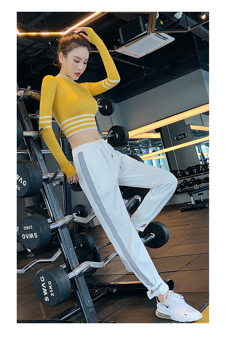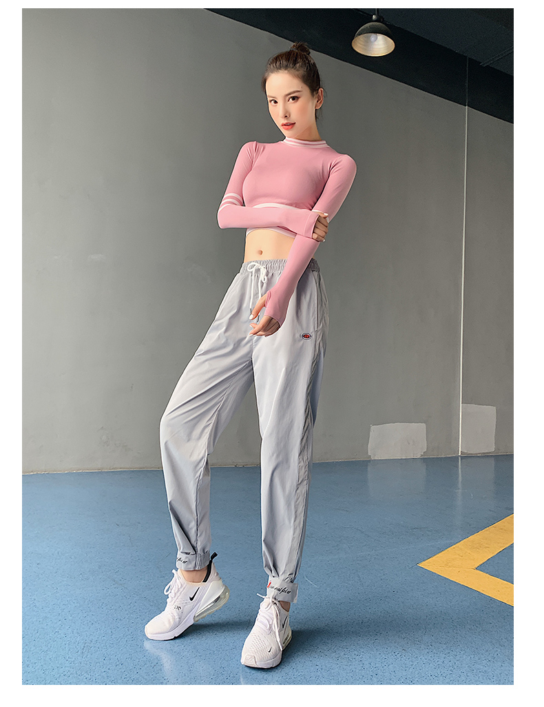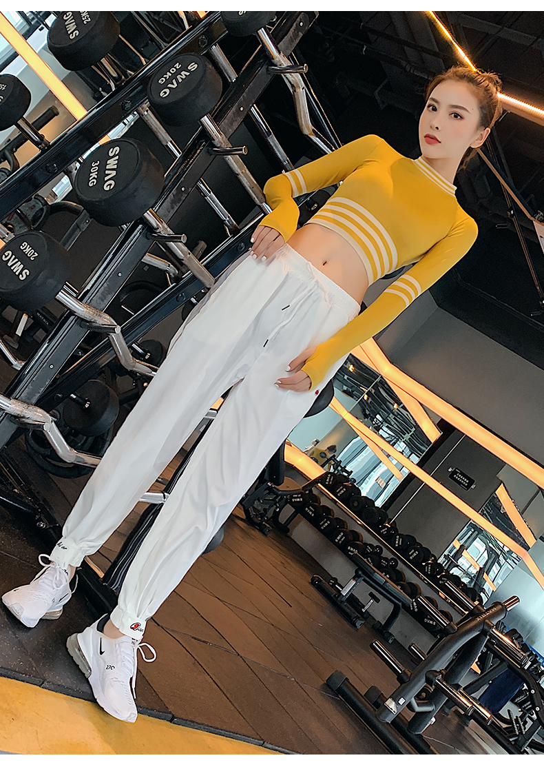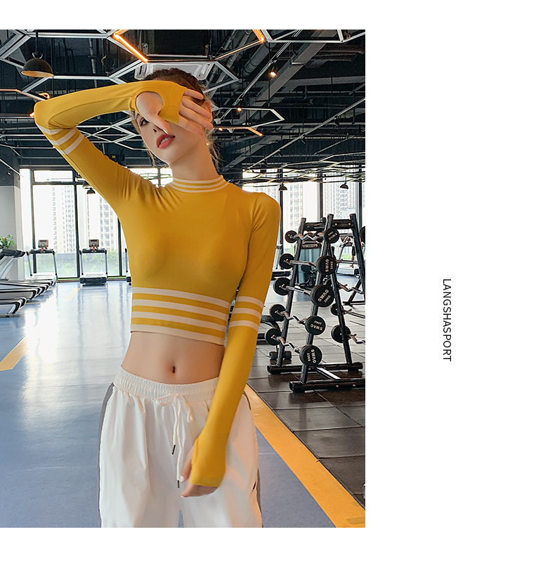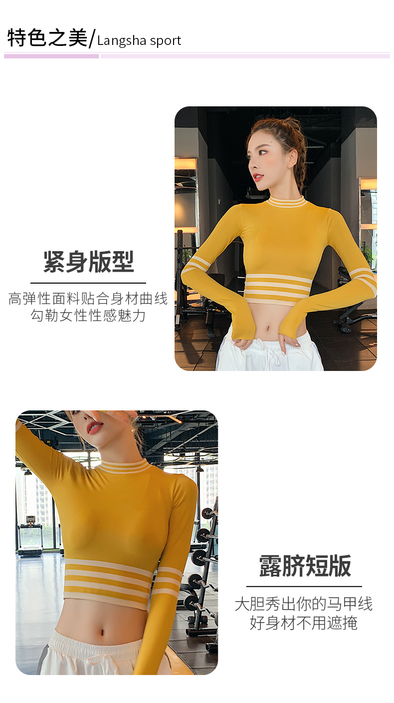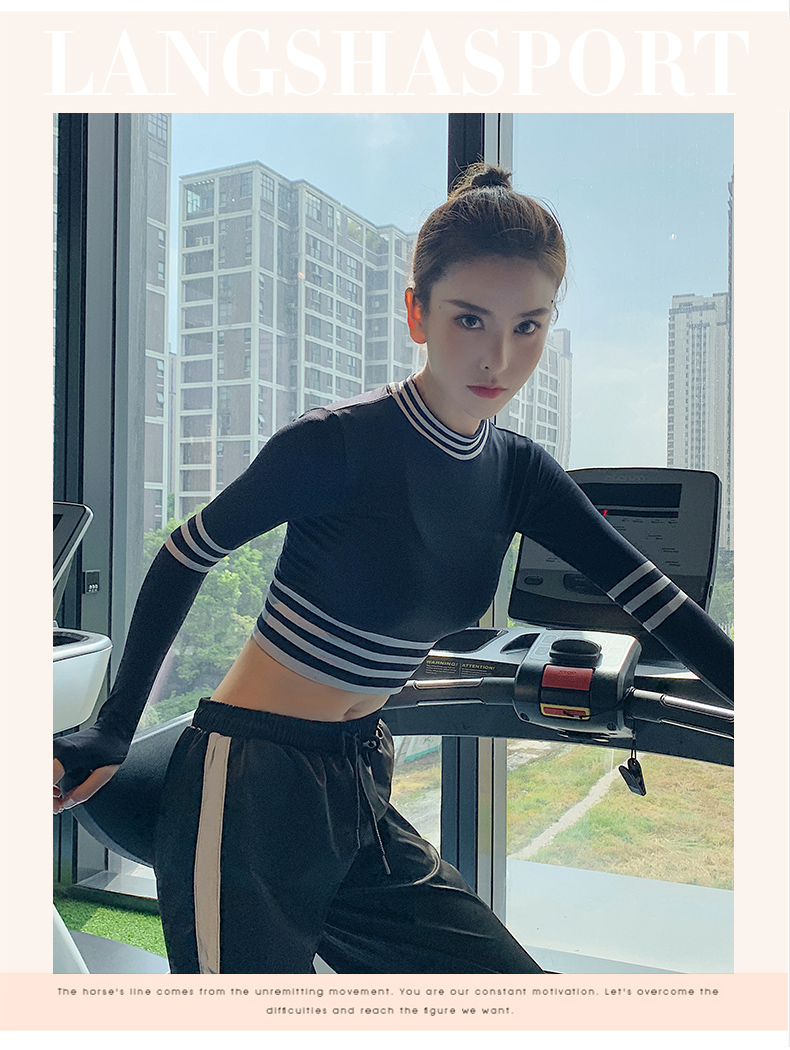 浪莎長袖健身衣女露臍性感運動T恤速干緊身春秋跑步瑜伽服上衣