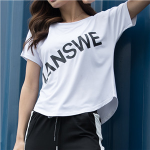 浪莎運(yùn)動(dòng)短袖T恤女大碼寬松健身服跑步白色春夏速干上衣瑜伽半袖