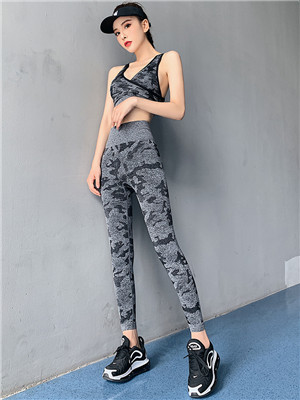 浪莎高腰健身褲女彈力緊身套裝提臀迷彩速干跑步運(yùn)動(dòng)收腹瑜伽褲