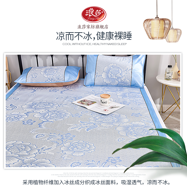 浪莎涼席冰絲席三件套1.8m床夏季1.5米折疊雙單人1.2學生宿舍席子