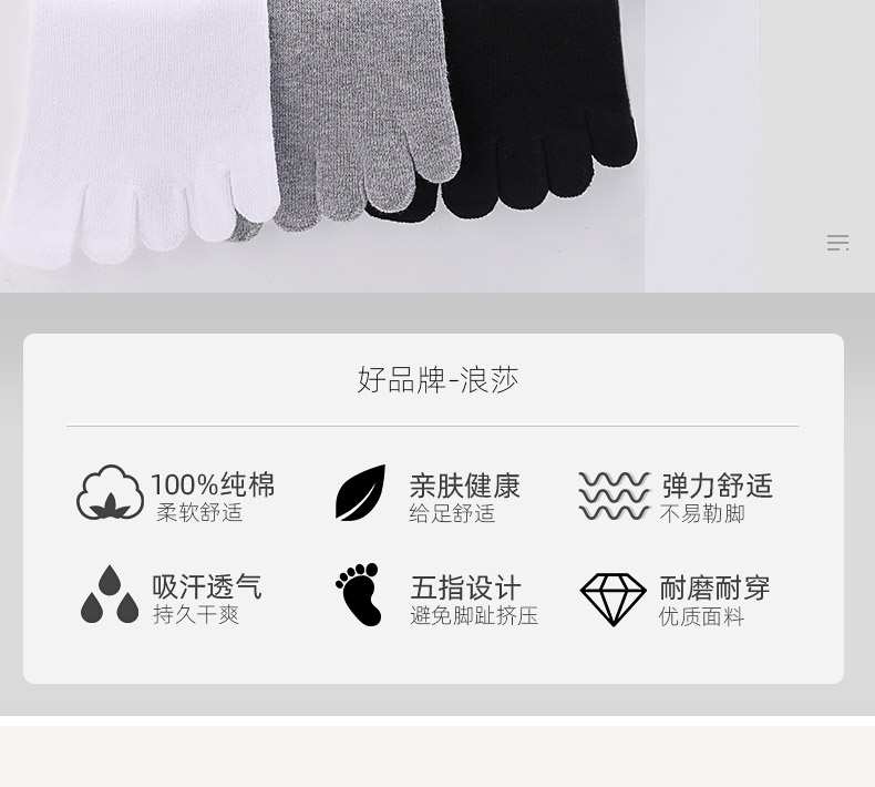 浪莎五指襪男士純棉中筒襪春秋薄款全棉腳趾防臭吸汗分趾襪子女夏
