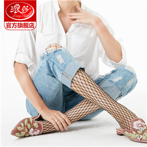 浪莎絲襪春夏超薄性感黑絲襪子女 搭配破洞牛仔褲漁網襪連褲襪