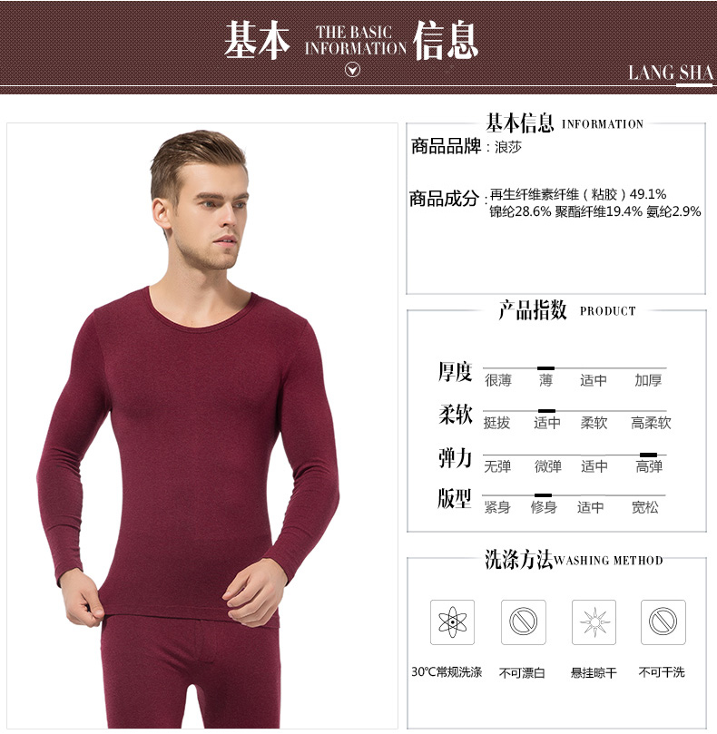 浪莎無縫美體秋衣秋褲套裝男士薄款高彈打底秋冬青年修身保暖內衣
