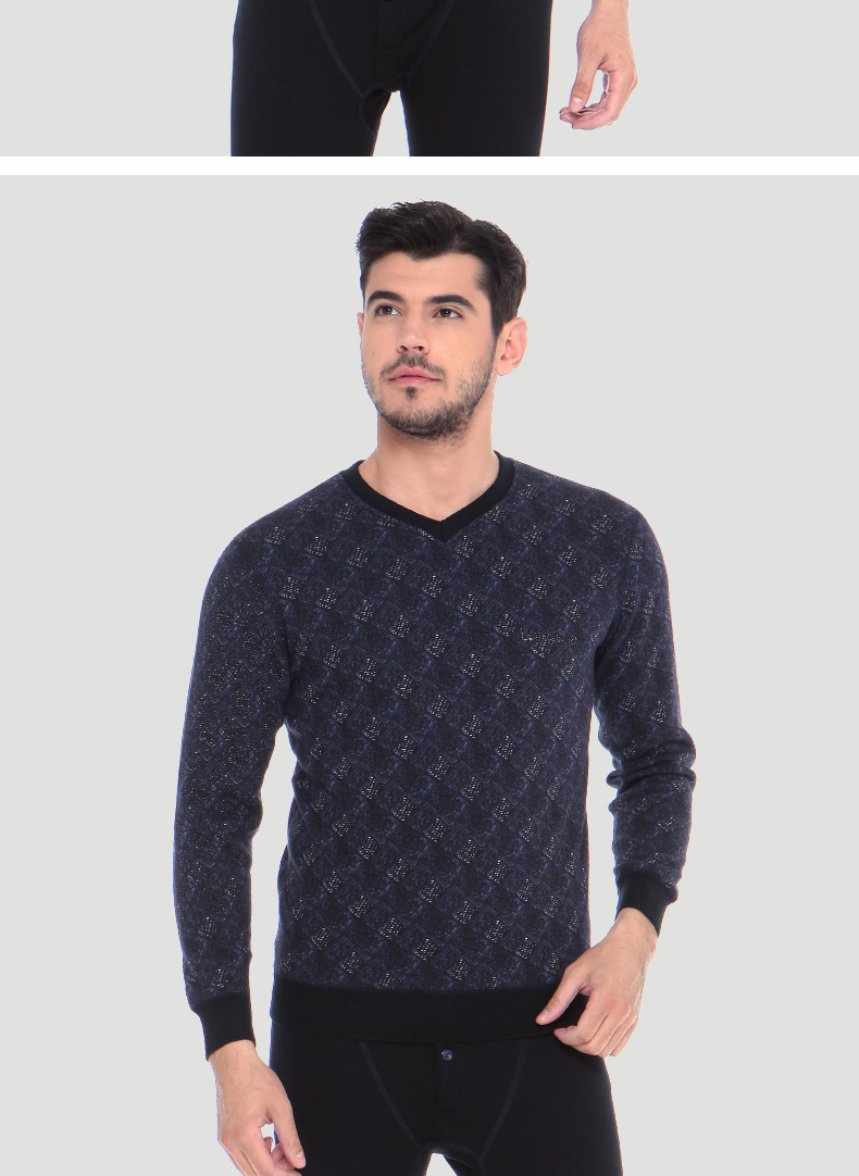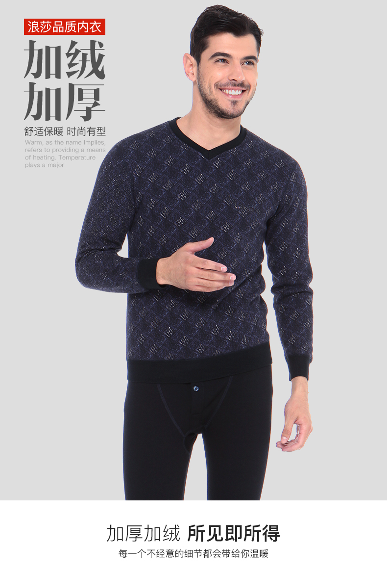 浪莎時尚加絨加厚保暖內衣套裝男士中年格子秋衣秋褲冬季打底防寒