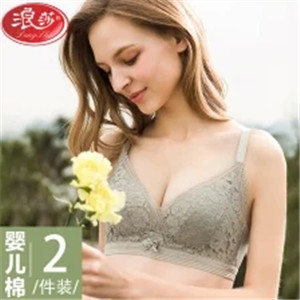 浪莎嬰兒棉舒適無鋼圈聚攏文胸蕾絲性感美背內衣女士中厚杯小胸罩
